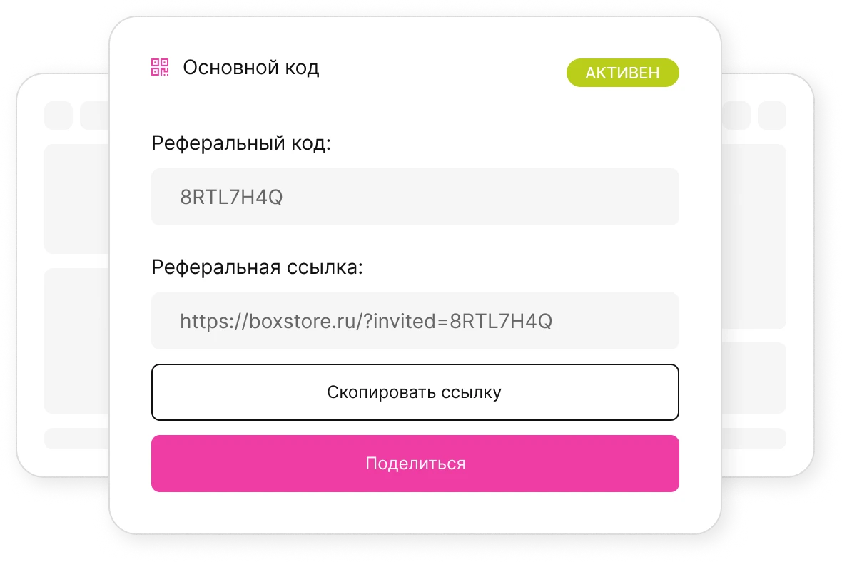 Создайте свой уникальный реферальный код или используйте код, созданный автоматически
